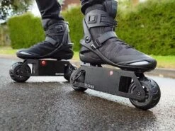 Genauer gesagt handelt es sich dabei um einen Unterbau („Platforms“), also die Schiene inklusive der zwei Räder, dem elektrischem Antrieb, dem eingebautem Akku und der Steuerungseinheit. Mit diesem Unterbau kannst Du nun im Handumdrehen Deine eigenen Skates „elektrifizieren“.