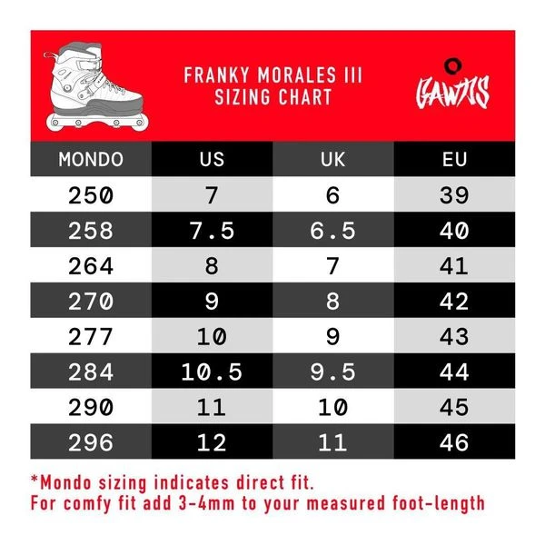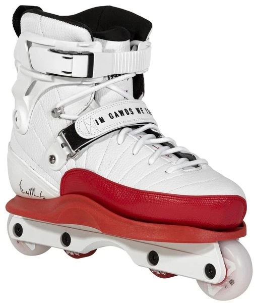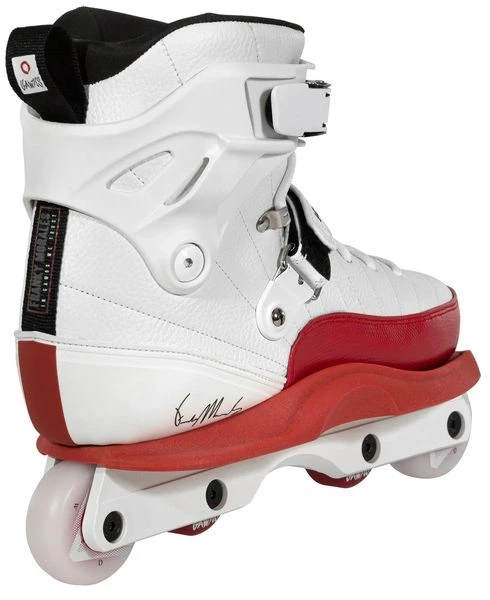 Der Franky Morales Pro von GAWDS ist weiterhin ein Hybrid-Skate (wie es Franky’s USD Carbon Skates auch waren) – also teils Softboot, teils Hardboot. Das Innenleben, also die Polsterung, ist direkt mit der Schale verarbeitet. Somit hat man keinen herausnehmbaren Innenschuh wie bei der klassischen Aggressive-Skate Konstruktion. Dadurch bekommt ein sehr direktes Fahrgefühl und die Kraft und Befehle werden direkt übertragen.