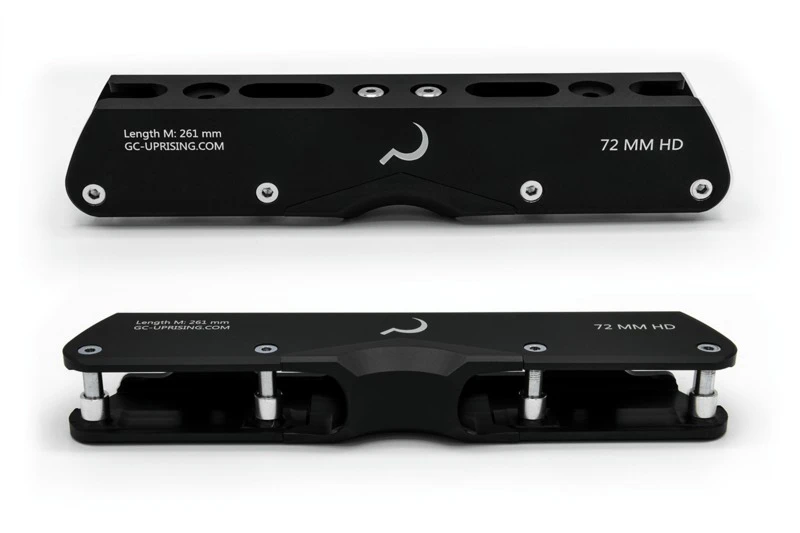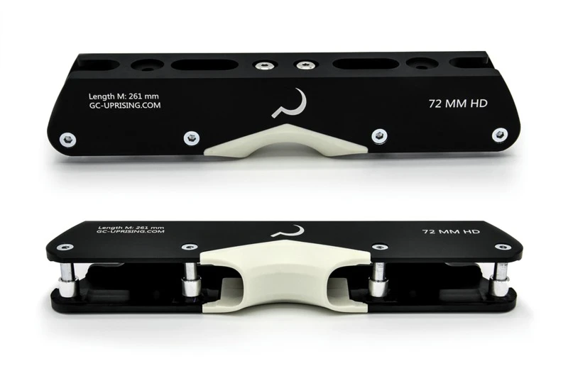 Similar to large wheeled aluminum frames, the HD frames are stiffer and more responsive than the typical UFS plastic grind frame – allowing for increased energy transfer equaling more speed at the park and in the street. Countersunk axle holes protect bolts from wear. Interchangeable aluminum and plastic h-blocks are included and offer the user options for all kinds of obstacles.