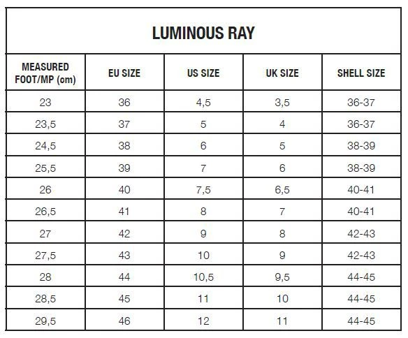 | Schiene | LUMINOUS Aluminium FSK Frames (EU 36-41: 243mm / EU 42-47: 255mm) |