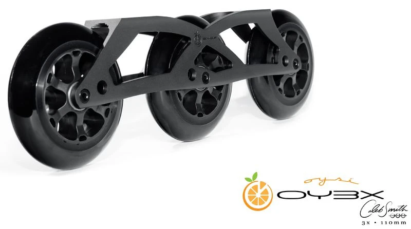 OY3X chassis makes use of the dished hubs found on 125mm, 110mm, and 100mm wheels to accommodate different wheel sizes without the use of specialized sidewall spacers.