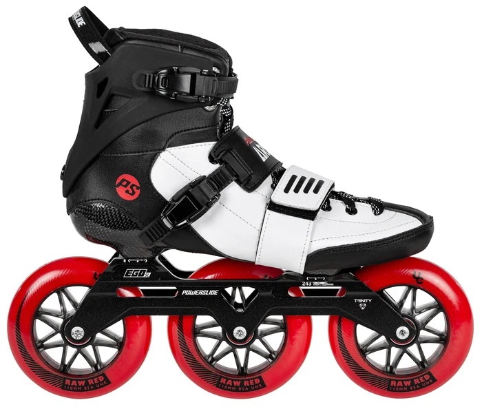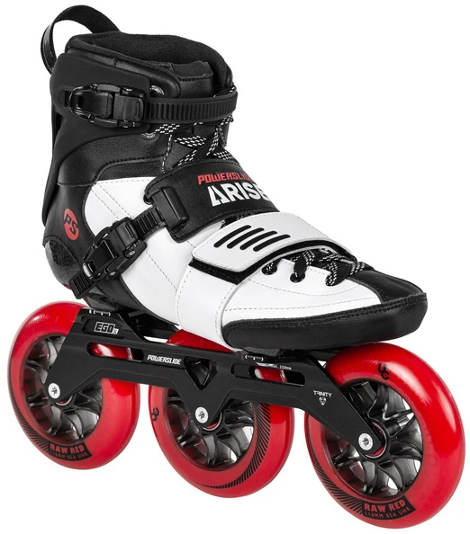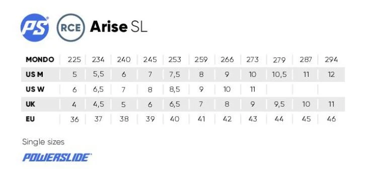 Der POWERSLIDE SL 110 ist eines von drei Modellen der Arise-Modellreihe von POWERSLIDE. Abseits des Namens und der Optik unterscheidet sich dieser Skate aber deutlich von seinen Namensvettern, wenn es um die VielfĂ€ltigkeit des Einsatzbereiches geht. Denn der Powerslide Arise SL wurde mit dem Fokus auf Speedlalom (SL) entwickelt. Er vereint die Eigenschaften aus dem Urban Skate Bereich und dem Powerskate Bereich. Die sehr kurze, gefrĂ€ste und dadurch sehr robuste Powerslide Ego SL Aluminuim 9,6″ (243mm) Frame hat in Verbindung mit den 110mm Rollen einen sehr engen Radstand (Absstand von der ersten bis zur letzten Rolle) und bietet damit optimale AgilitĂ€t und Wendigkeit die im Urban Breich absolut Notwendig sind. Der Oberschuh steht hierbei im Kontrast, da dieser mit seiner Hybrid-Karbonschale und dem Glasfaser verstĂ€rktem Schaft an einen Powerskate erinnert. Es handelt sich hierbei also um einen „Cross-Over“ Skate, der die Eigenschaften zweier Skatebereiche vereint und somit vielseitig Einsetzbar ist.