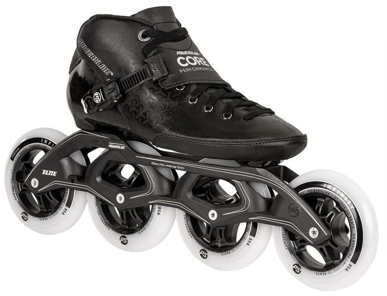 The Powerslide Core Performance Black 4×110 speedskates give you access to racing quality at unbeatable prices. The boot takes all the comfort and support from the XXX series using a new design made with microfiber and attractive black matt nano grade leather. The shell of the boot is made from carbon, glass-fiber, and basalt to guarantee that your push will always feel powerful. If you are looking for the race feeling this is it. The skate comes with 13,2? Powerslide Elite frames, 4x110mm Infinity wheels, and some WCD ABEC 9 bearings to keep the skate rolling perfectly for skaters that want to beat some records.