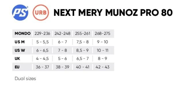 Make the city your playground with the Next Mery Munoz 80 pro model urban freeride skate from Powerslide. Just like Mery, this impressive pro model skate lets you ride stairs, jump big, slide far and fast, and explore whatâs possible on inline skatesâjust like Mery. The Next Mery Munoz 80 comes with a rigid and durable hard boot shell and a height-adjustable cuff so you can personalize your setup to suit your personal skating style. No two people are the same, and the Next allows skaters to adjust their skateâs flex, support, and comfort level so you can have confidence knowing youâre always skating at your optimum level. Complete with the famous TRINITY 3-point mounting system, the wheels are brought as close to the boot as possible, giving you a low center of gravity, better stability, and improved control. The POWERSLIDE Next Mery Munoz Pro 80 inline skate is a fun, fast, and customizable urban freeride skate perfect for cruising and exploring the city.