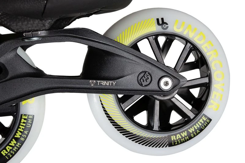 „Trinity“ nennt sich das neue Montagesystem, dass POWERSLIDE nun auch bei der Swell-Reihe verwendet. Durch das Versetzen der beiden vorderen Montagepunkte nach auĂźen formt man mit der Schiene eine Art Tunnel. Während in der Vergangenheit immer mehr Nachfrage nach größeren Rollen aufgekommen war, wurde dementsprechend der Schwerpunkt immer höher und damit das Fahrverhalten instabil. Das Trinity Montagesystem erlaubt nun den Schwerpunkt ca. 1cm herabzusetzen (verglichen mit anderen Skates mit der selben Rollengröße).
