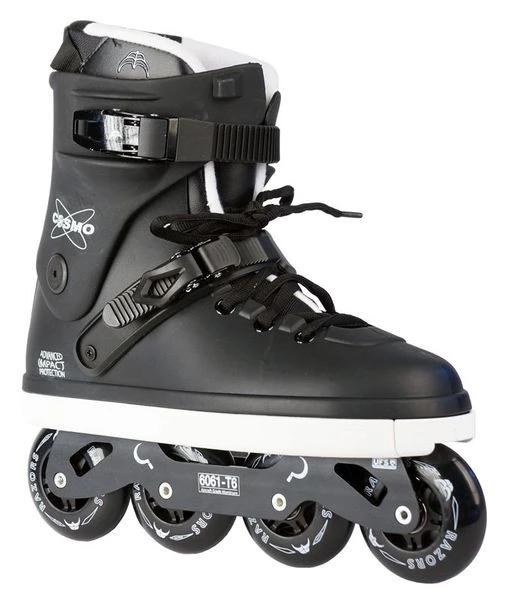 Wie der Shift, verfĂĽgt auch der Cosmo ĂĽber das neue IFC-System. Damit ist das Wechseln der verschiedenen Parts, die einen Freeskate zu einem Aggressive-Skate machen, sehr leicht. Der Liner ist dĂĽnn gepolstert, kommt mit Aluminiumbuckles, einer Aluminiumframe und 85 A-weichen Rollen.