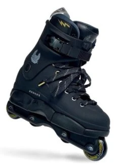 The Nico Auroux Pro SL Aggressive Skate comes complete with Premium Razors Liners, Alumiunum Razors Buckle, Waxed Hockey Laces with Reflective Flakes and Gold Metallic Lace Tips, GC FLT3 Frames with Chrome Sickel Axles, GC 60mm/90A Bullet Wheels (setup anti-rocker), ABEC9 Bearings and Shift/SL Heelpad, and 3M Reflective Carry-Strap.