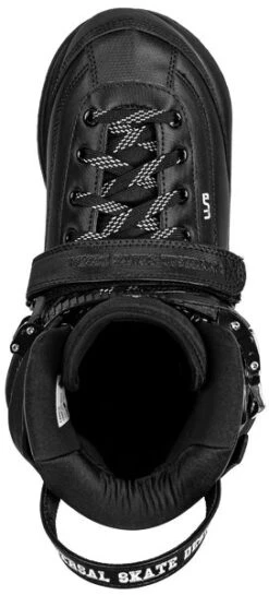 Der Carbon von USD ist ein Hybrid, also teils Softboot, teils Hardboot. Das Innenleben, also die Polsterung, ist direkt mit der Schale verarbeitet. Somit hat man keinen herausnehmbaren Innenschuh wie bei der klassischen Aggressive-Skate Konstruktion. Dadurch bekommt ein sehr direktes FahrgefĂĽhl und die Kraft und Befehle werden direkt ĂĽbertragen.